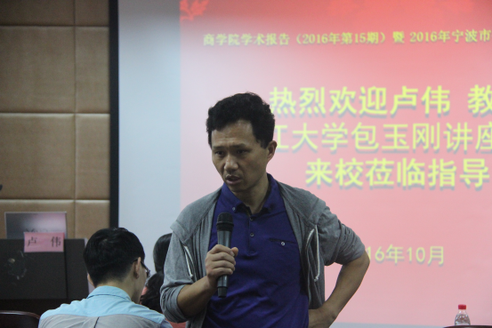 学术报告(2016年第15讲)暨2016年宁波市研究生学术节专家报告会在我院109报告厅顺利举行。本次报告会邀请了浙江大学包玉刚讲座教授卢伟教授担任主讲人,主题为“比黄金更有效的国际型投资:国际知识产权投资和博弈技巧”。报告会由金融发展研究所所长张琴教授主持,我院副院长杨丹萍教授、部分青年教师和100余名硕士研究生聆听了报告。