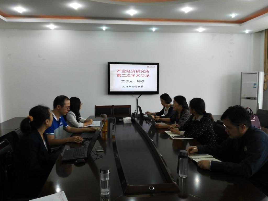 学术沙龙(2016年第7期)在11#412会议室如期举行。学术沙龙由产业经济研究所所长胡求光教授主持,产业经济研究所邱波副教授做了精彩的学术报告,产业经济研究所教师参加了此次学术活动。