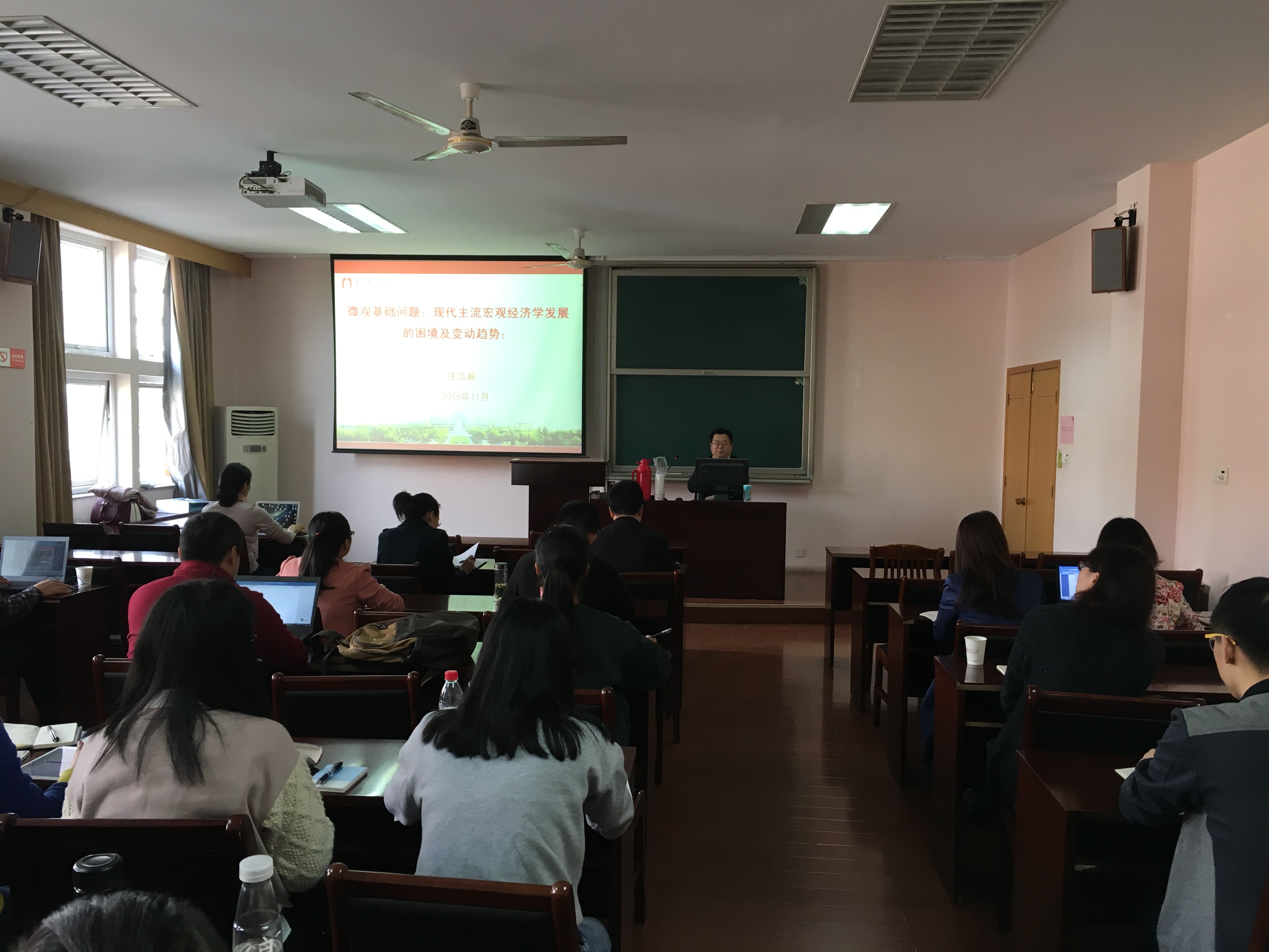 汪浩瀚教授的报告分为五个部分。第一,汪教授从经济学是社会科学中的硬科学引入主题,论述了斯密、马歇尔、凯恩斯等大家的经典著作,并对经济学的起源和发展脉络展开分析。第二,汪教授探讨了宏观经济学的微观基础问题,在对以资源配置范式和凯恩斯范式为代表的微观和宏观两大基础范式分析基础上,指出金融学、国际贸易学等学科的微观化问题。第三,汪教授以当下热点的产业政策之争为例,指出微观基础问题争论的实质是经济理论与分析范式之争,并据此探讨了经济学宏观基础的构筑。第四,汪教授论述了经济学未来变化的重要趋势——演化经济学,并剖析了其中的创新机制和选择机制。第五,汪教授结合自己的教学研究和博士论文等科研经历,对现代主流宏观经济学的发展困境和变动趋势进行总结。