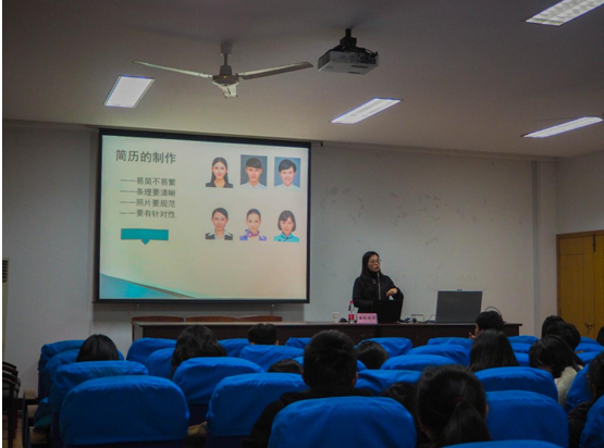 培训会现场,潘彤经理首先从职业理想谈起,告诉同学们每个看似轻松的岗位后面都有艰辛的一面,以此来教导大家脚踏实地的从小事做起。其次对于简历制作,潘经理指出面试简历需要简洁明了,突出重点,将自身照片、联系方式等放在醒目位置。对于面试技巧,潘经理强调面试前应做好充分的准备,并提出初试中该问与不该问的问题若干供同学们参考。