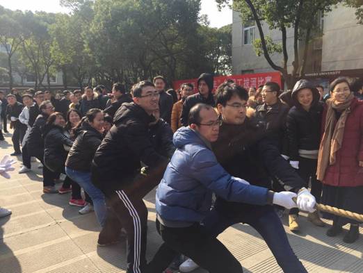 12月29日中午,校工会组织学校各分工会在安中大楼前举行“迎新年”拔河比赛。学院党委书记胡亚娥、分工会主席李浩明组织杨柳、姚乐彦、张晓婳、施晟、陈彬、王昕天、苏小松、闭明雄、靳来群、蒋鹏涛、余新平等学院教师积极参与此项活动。在首轮比赛中,体育博彩 队一鼓作气轻松战胜潘天寿艺术学院队。第二轮比赛中,由于实力相差悬殊,最终不敌体育学院队。