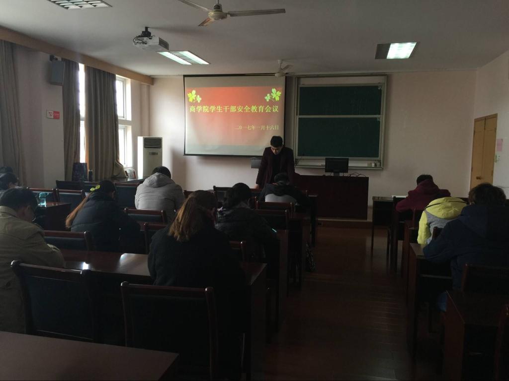 为增强学生的安全意识和自我保护能力,牢固树立“安全第一、预防为主”的思想,确保我院学生过一个“安全、祥和、文明”的寒假,1月16日中午,我院学生干部安全教育会议在418教室举行。学院本硕各班班长、学生代表参加会议,会议由院团委书记陈彬主持。