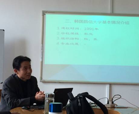 接下来,白泉旺、张亚越、吴瑶老师依次分享了出国短期任教的体会。首先,白泉旺老师分享了自己赴韩国昌信大学短期任教的经历。白老师介绍了韩国昌信大学的基本情况、在昌信大学担任的课程、参与的活动、收获与思考等。白老师图文并茂地介绍了韩国昌信大学的地理位置、校园情况等。在韩国昌信大学期间,白老师负责了《管理学》《汉语会话》《中国影视剧欣赏》三门课程,并且参与了运动会和校庆的大型活动,体会了多元化文化,也增加了教外国学生的经验。