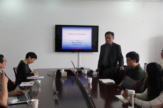 黄教授从创价、定位、集中(专业凸显)、联盟(人际网络)、全球在地化等五个方面谈了高校教师的发展策略。黄教授首先提出高校教师应该有一个明确的专业定位,经管专业的高校教师无论是做学术研究、还是跟政府部门或企业合作,都要在特定专业领域内创造价值,要有一种推动社会发展的使命感。黄教授注重科学研究的应用性,提出科研工作者要熟悉产业的实际发展,不能闭门造车,要借助企业平台开展研究;科研成果的作用包括创造知识和解决问题,大多数研究应该定位于解决现实问题。对于如何搞科研,黄教授指出高校教师应注重与他人的合作关系,建立国际性的人际网络和战略联盟,这对于问题挖掘、研究进程推进乃至成果发表都是非常有益的。报告中,黄教授从审稿人角度分析了一些SSCI论文在问题选择、文献分析、模型建立及整体价值等方面的常见问题,介绍了一些怎样选择投稿期刊的经验,并与到场师生分享了他自己团队的一篇论文。最后,黄教授指出由于中国产业发展问题在国际上引起的广泛关注,现在是一个中国人在国际上抬头的极佳时机,我们的高校教师一定要注重科学研究的国际化,理论与应用发展要跟国际接轨。在总结部分,黄教授提出科研工作者要“见自己”(把握自己的优势、劣势)、“见天下”(跟国内、国际同领域接轨)和“见众生”(做了什么、解决了什么、对周边的人乃至整个人类有什么贡献)。
