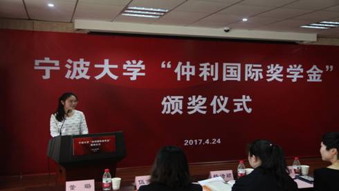 4月24日下午,宁波大学2015-2016学年“仲利国际奖学金”颁奖仪式在我院109报告厅隆重举行。仲利国际租赁有限公司副总孙博祥、仲利国际人力资源处总监许耿皓、宁大校友仲利国际宁波分公司杨诗颖、宁大校友仲利国际宁波分公司伍亦菲、仲利国际人力资源处周唯、我院党委副书记邵丽、学工办辅导员、20名获奖学生及部分学生代表出席颁奖仪式。我院学工办主任董璐主持颁奖仪式。