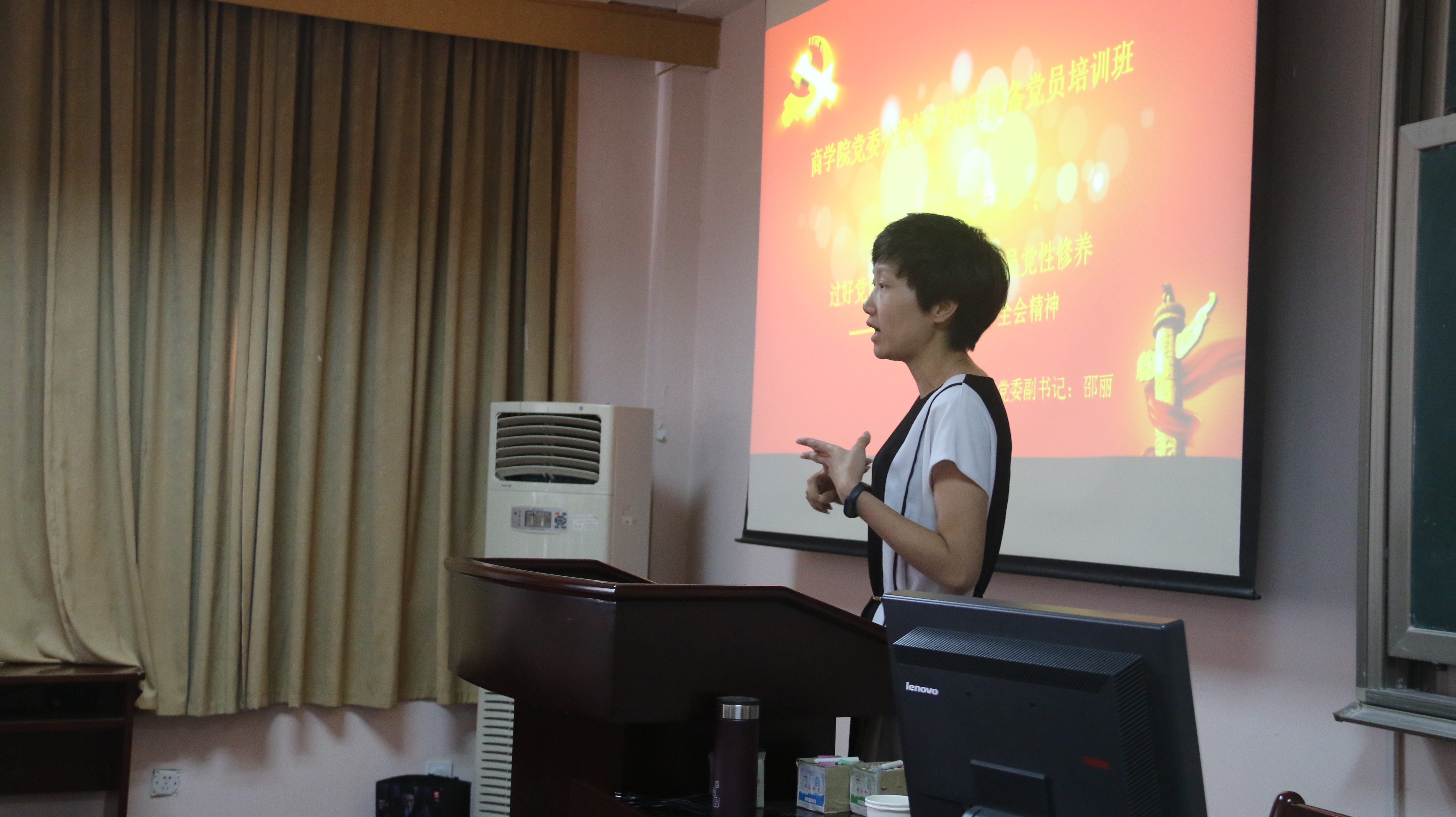 党委副书记邵丽作了开班动员,并为全体预备党员上了题为《过好党内政治生活,彰显党员党性修养——学习贯彻十八届六中全会精神》的党课。