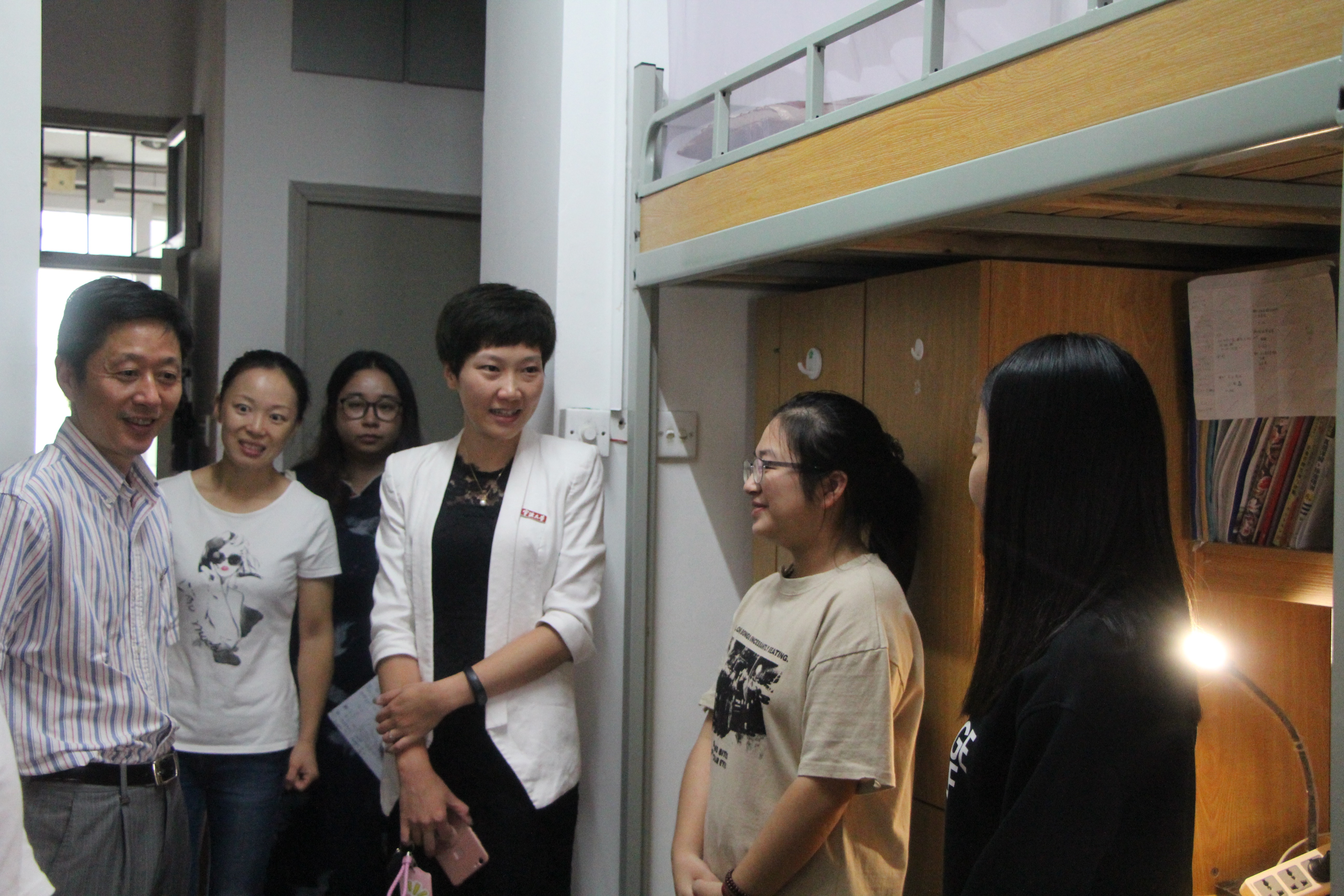 党委书记史宏协、副书记邵丽一行深入学生社区走访学生寝室,对优秀学生寝室进行现场表彰。