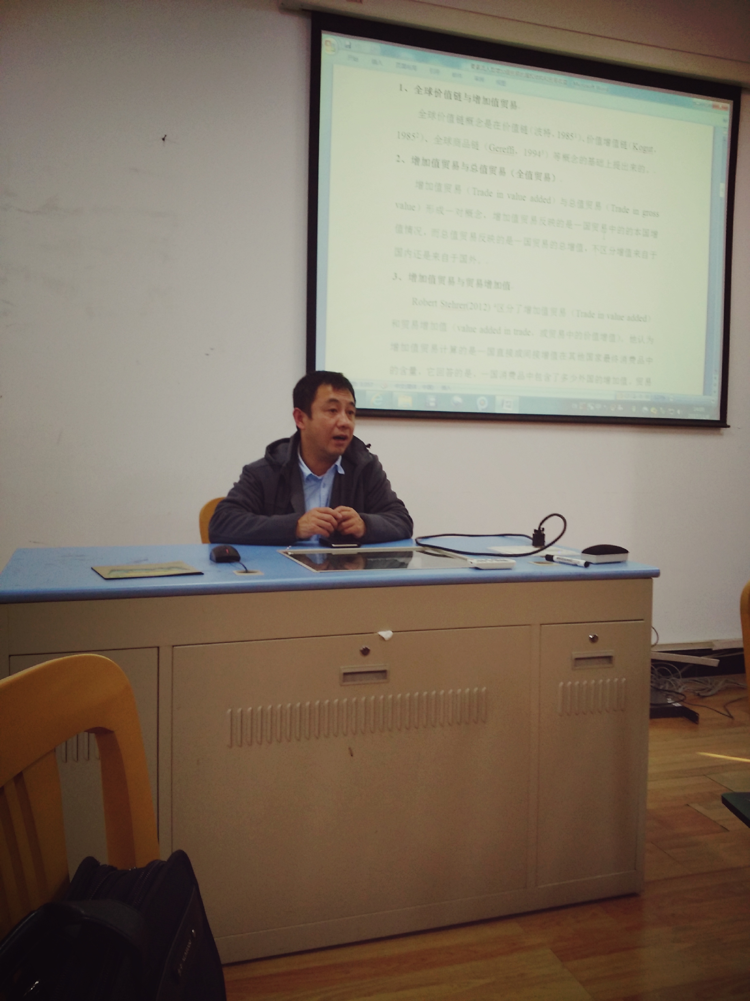 2017年11月8日下午,国贸系教师张海波副教授、楼朝明副教授和陈钧浩副教授根据各自的国家社科基金项目在国贸系会议室举办学术沙龙,叶劲松副教授对沙龙进行了点评,相关专业研究生及本科生聆听了老师们的讲座。