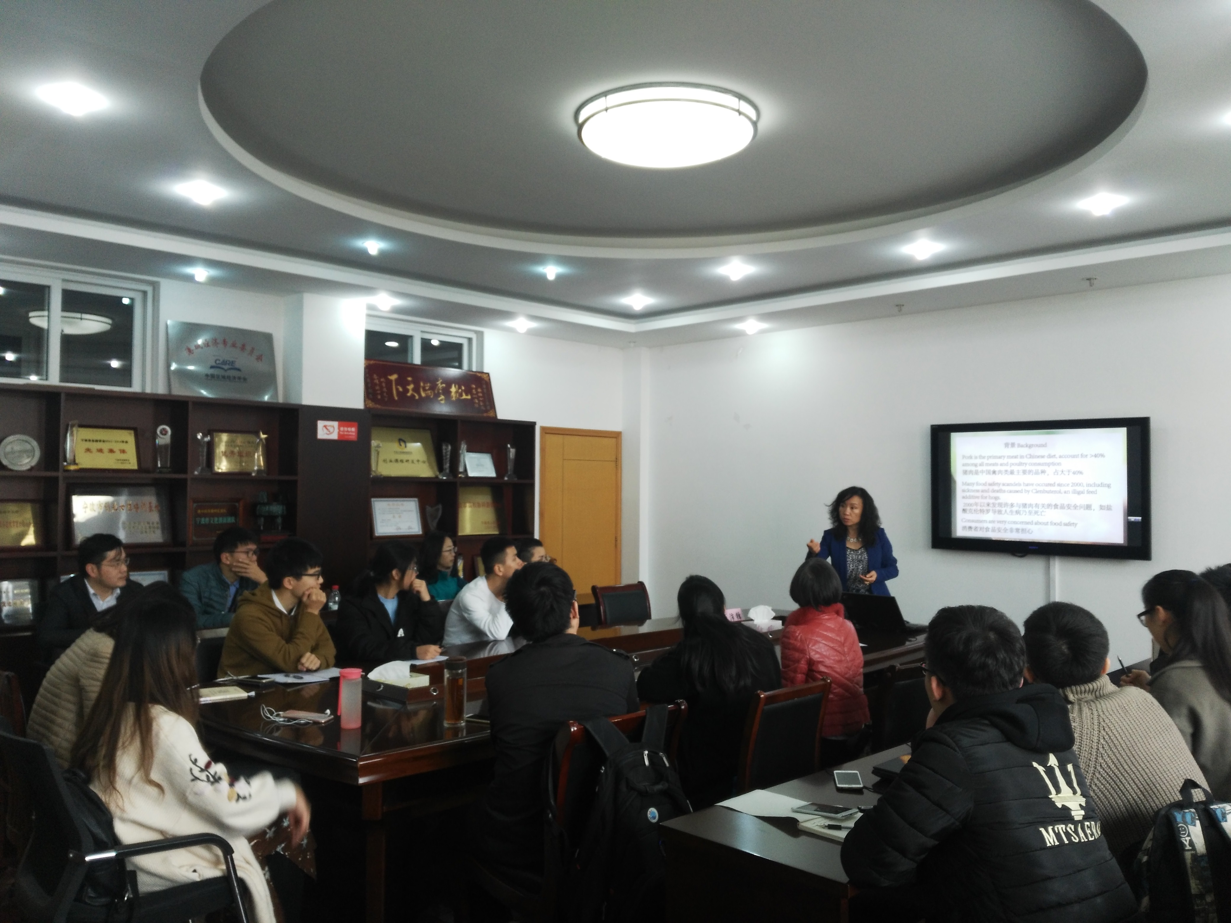王教授围绕消费者对食品安全、环保生产及动物福利的偏好,介绍了选择实验的方法和应用,其研究结果表明,中国消费者对食品安全支付意愿较高,对环保和动物福利的支付意愿较低。此外,王教授还与在座师生分享了在高水平SSCI期刊发表论文的方法和经验。