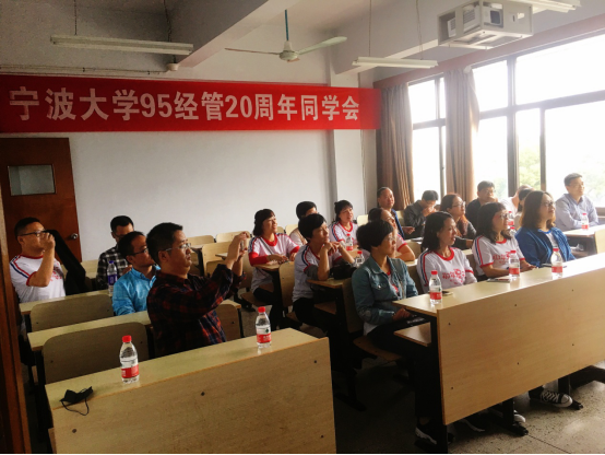 10月13日,全体老师和同学在东钱湖南苑花博园度假酒店举行主题为“那年我们在一起”班级活动。班主任朱福建老师代表全体教师发表了热情洋溢的欢迎辞,用“激动”“回忆“”感谢““祝福”四个关键词,回忆20年前与同学们相处的点点滴滴。95经管班同学在20年前利用业余时间拉来的企业赞助在宁波大学组织了两次全校性活动:第一次在宁波大学组织卡拉OK比赛,全体学校领导出席观摩;第二次在学校组织爱心共享雨伞。同学们在活动中依次上台表演节目,参与互动游戏,尤其万马奔腾游戏让活动达到了高潮。
