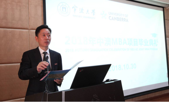 紧接着,史宏协书记宣读了中澳MBA项目2018届秋季毕业生名单。毕业生们依次上台,从两位院长的手中接过宁波大学结业证书和堪培拉大学工商管理硕士学位证,并和两位院长合影留念。