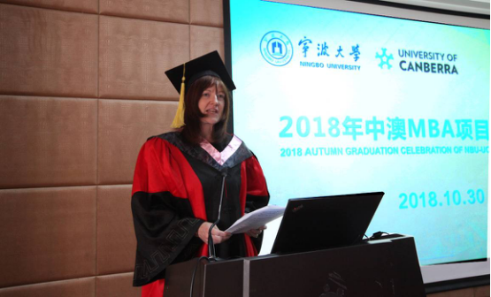 接下来,堪培拉大学商业、政府与法律学院执行院长Maree Sainsbury博士向在场的毕业生们表示祝贺,并提到堪培拉大学和宁波大学合作默契,友谊长存,中澳MBA项目是堪培拉大学最重视且重要的国际合作项目之一。她祝愿所有中澳MBA毕业生前程似锦、幸福美满。
