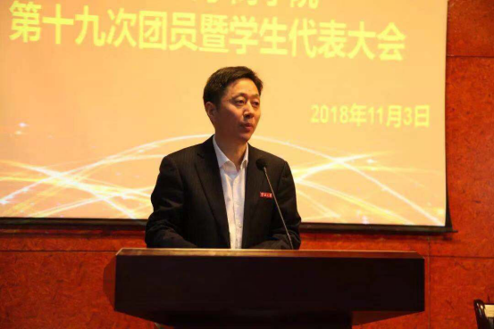 第十九次团员暨学生代表大会在10号楼315报告厅隆重举行。校团委书记周洵瑛、校学生会副主席史楚玄、院党委书记史宏协、院学工办主任董璐、团委书记陈彬、副书记周双双及兄弟学院团学组织代表出席本次大会。来自学院47个代表团共计210名学生代表和93名第十九届团委、学联会委员候选人及各团学组织干部候选人参与本次大会。