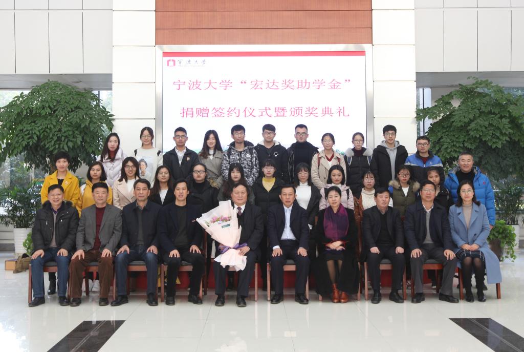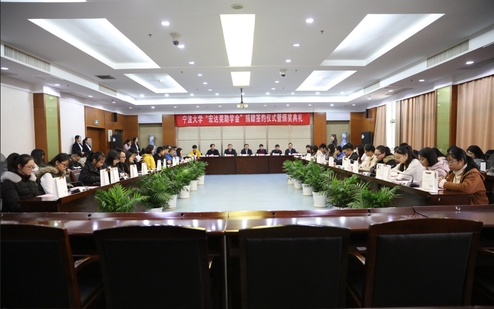 12月24日,宁波大学“宏达奖助学金”捐赠签约仪式暨颁奖典礼在安中大楼碧华厅举行,宁波宏达货柜储运有限公司陆汉幸董事长一行,宁波市北仑区慈善总会会长蒋素春,宁波大学副校长乐传永出席了活动。发展联络处、教育发展基金会、学生发展与服务处相关负责人,第一轮及第二轮受助学生体育博彩