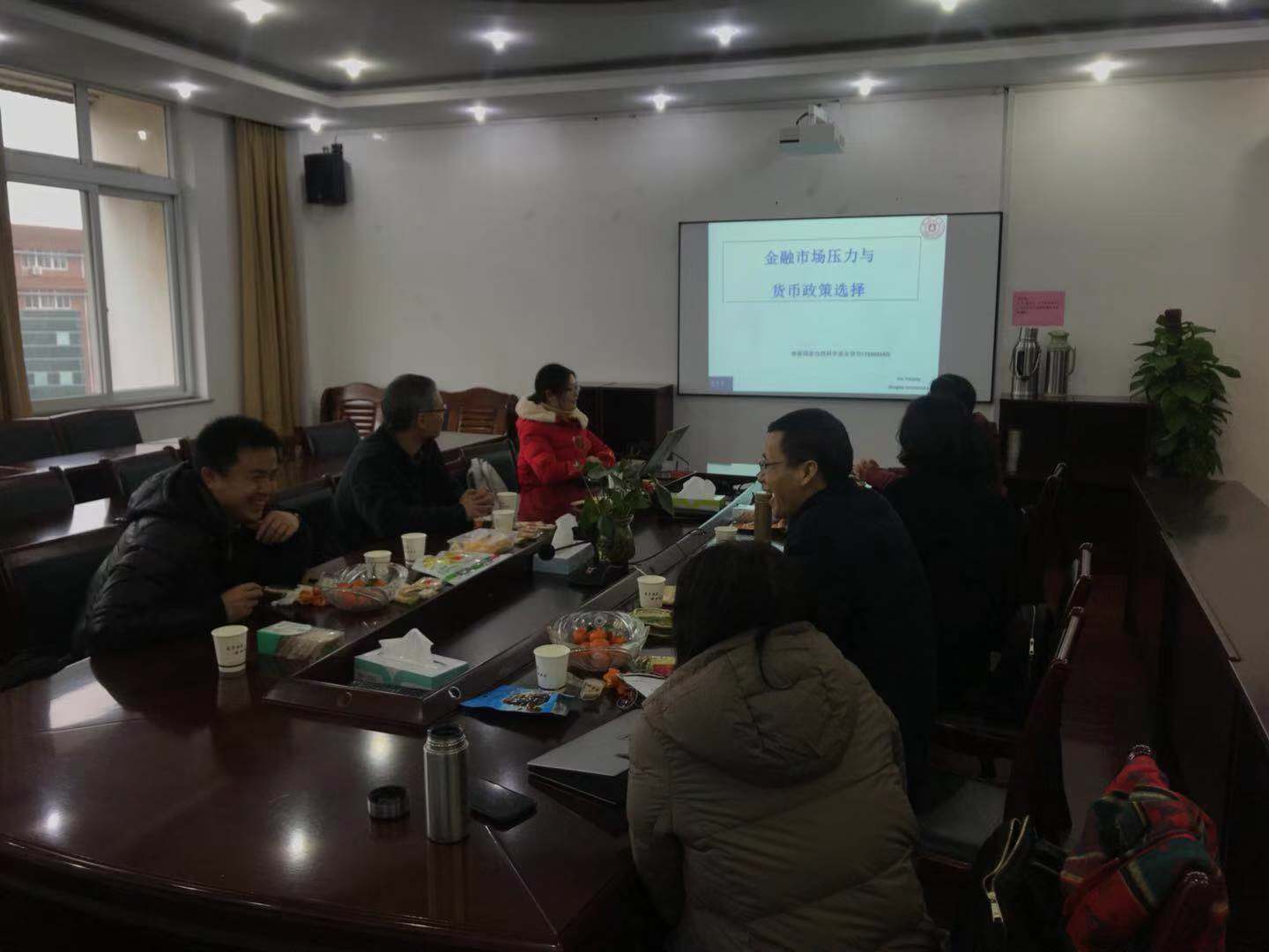 学术沙龙(2019年第1期)在11号楼412会议室举行。本期学术沙龙主讲人是我院金融发展研究所的胡育蓉博士,沙龙主题为“金融市场压力与货币政策选择”。沙龙由金融发展研究所所长张琴教授主持,金融发展研究所和数量经济研究所的老师们参加此次学术活动。
