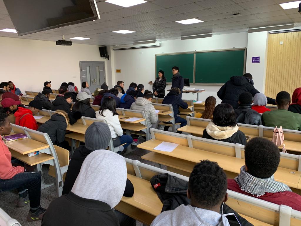 2019年1月18日,我院在包玉书科学楼8号楼101室召开留学生寒假留宿安全稳定会议。院党委副书记韩雯琛、学工办主任董璐、部分留学生班级班主任、留学生辅导员及寒假留宿留学生参加了此次会议。