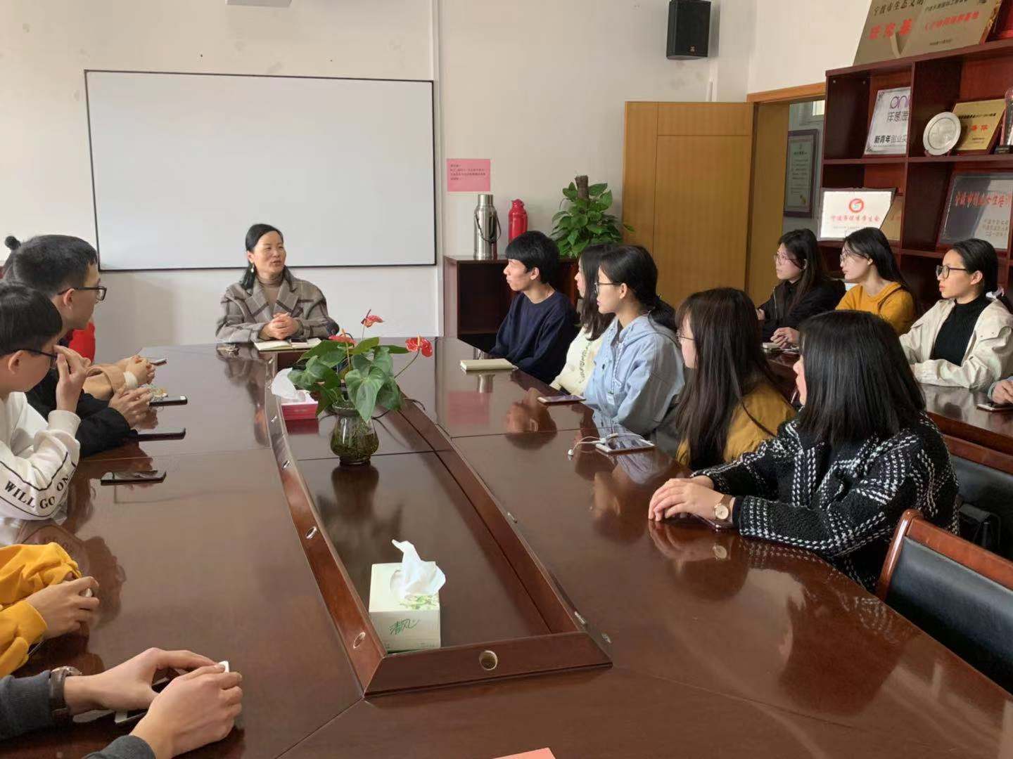 近日,学院考研出国学生座谈会在11号楼412室召开,19届考取国内外研究生的学生代表及低年级备考学生代表参加了此次座谈,院党委副书记韩雯琛、学工办就业指导中心老师王凡到场,与同学们进行交流。