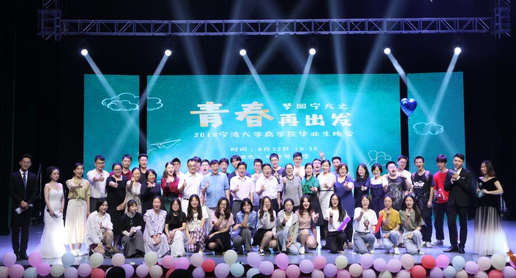 6月22日晚,我院在林杏琴大会堂举办 “梦回宁大之青春再出发”2019届毕业晚会。院长金祥荣,院党委书记史宏协,副院长盛沛锋、周新苗,院党委副书记韩雯琛,系主任熊伟清,毕业班班主任钱树静、杜琳,还有长期以来关心学生成长的应志芳、张云华、程永毅老师,院办、科研办、教务办、学工办等老师,及600余名毕业学子共同参加了此次晚会。