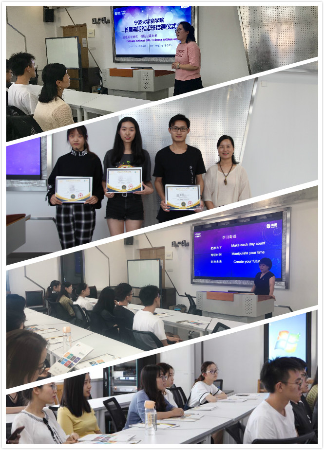 8月29日下午,我院首届暑期雅思班结课仪式在学院414教室举行,我院党委副书记韩雯琛、华通海派留学副总经理黄靓出席,我院学工办王逸娇主持。