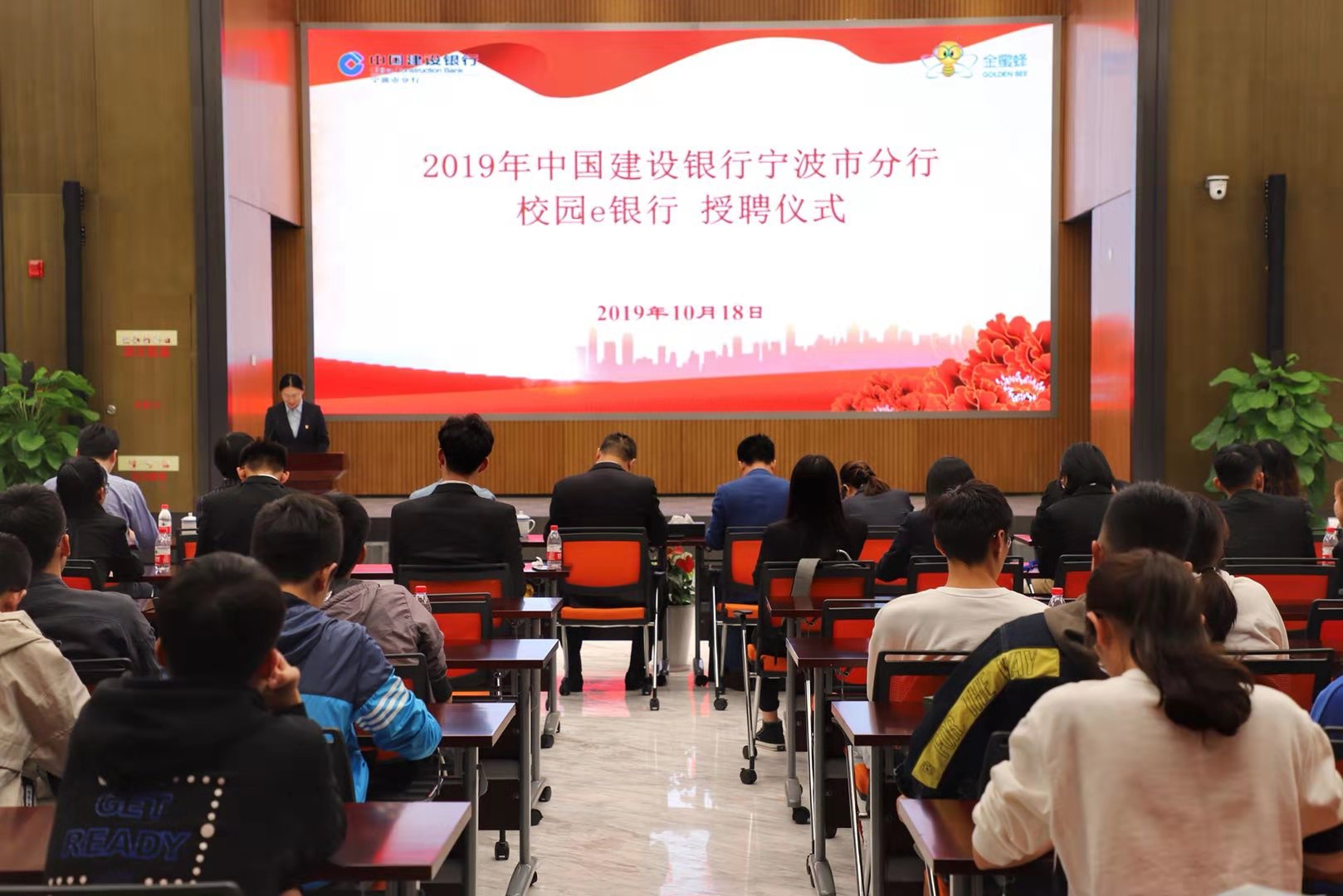 10月18日下午,建设银行宁波市分行校园e银行授聘仪式在中国建设银行宁波分行371多功能厅圆满落幕,本次仪式在上一届成功经验的基础上,沿用了授聘仪式与金融宣讲相结合的形式。中国建设银行宁波市分行韩国辉副行长,体育博彩