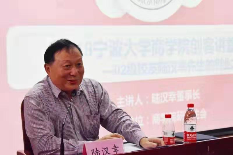 MBA、宁波市北仑对外贸易有限公司、宁波市北仑协成贸易有限公司、宁波宏达货柜储运有限公司以及宁波宏佳股权投资有限公司四家公司的董事长陆汉幸主讲,院党委副书记韩雯琛、会计信管团队负责人董璐出席,商院部分研究生及本科生参加。