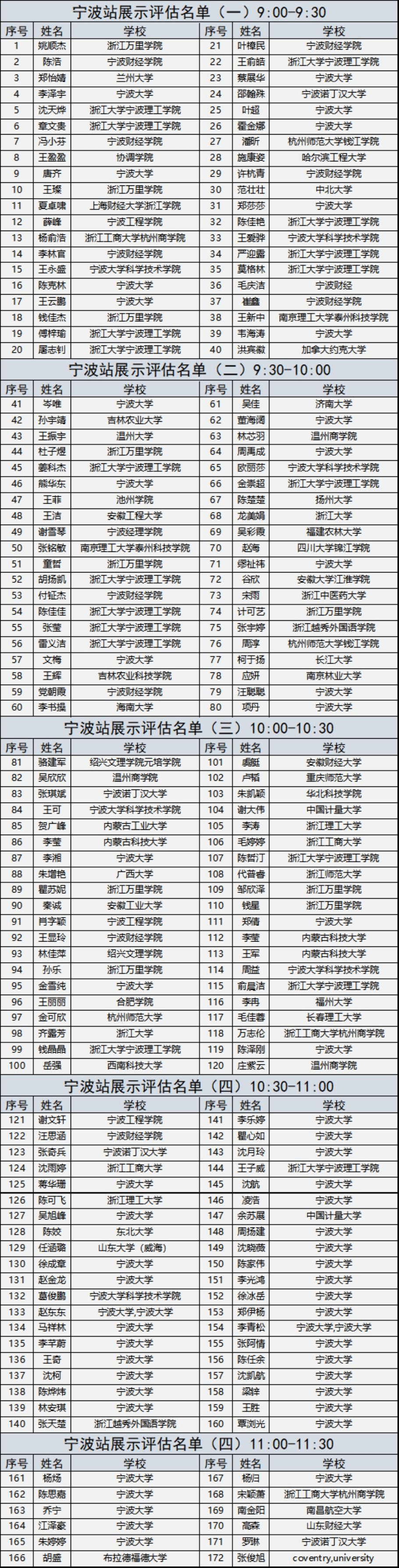 进入中海地产二〇二〇『海之星招募计划』宁波站展示评估的名单如下: