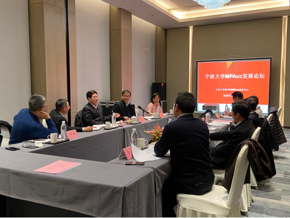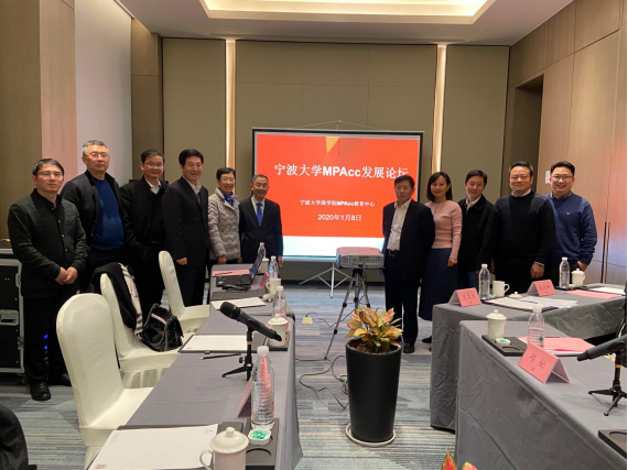 2020年1月8日下午,宁波大学MPAcc发展论坛顺利举行。学院金祥荣院长、史宏协书记、陈涛副院长、MPAcc教育中心主任邱妘教授及原宁波市审计局局长郑建飞、宁波世明会计师事务所董事长李钢、银亿集团常务副总裁张明海、雅戈尔副总经理兼董秘刘新宇、浙江省海港投资运营集团财务部主任金国平等参加此次论坛。论坛由MPAcc教育中心执行主任陈翼然主持。