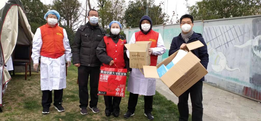 和江北团区委,捐赠了1000副医用手套、800个普通口罩和100副护目镜,并由刚巧前来区里慰问志愿者的宁波团市委书记金昕交到了志愿者手中,让在第一线抗疫的志愿者们十分暖心。鄞州校友会秘书长庄学东说:我们校友会尽微薄之力,向第一线的志愿者致敬。