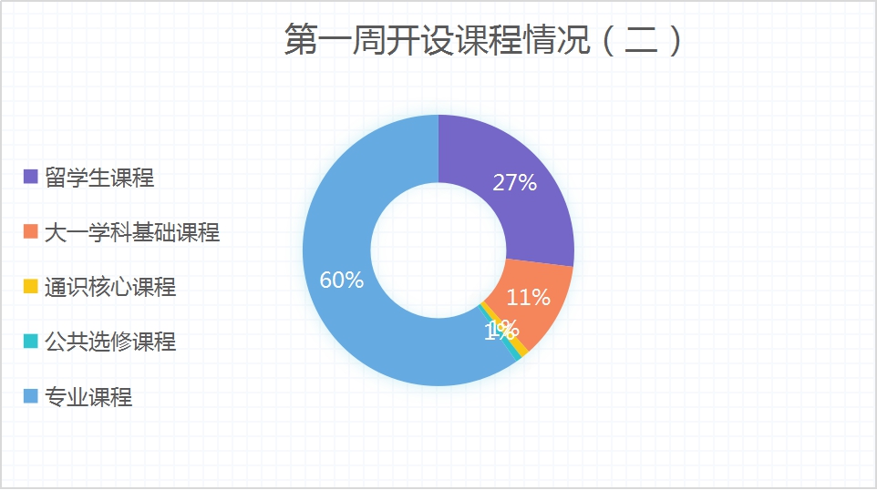 第一周线上教学累计上课学生共计15740人次,其中中国学生12403人次,累计缺课人数为41人次(包括生病住院及申请“辅导+自学”学生);留学生3337人次。