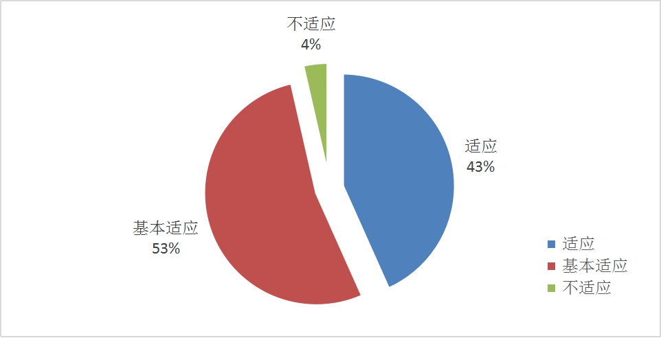问卷结果表明:96%的学生对线上教学方式表示能适应。