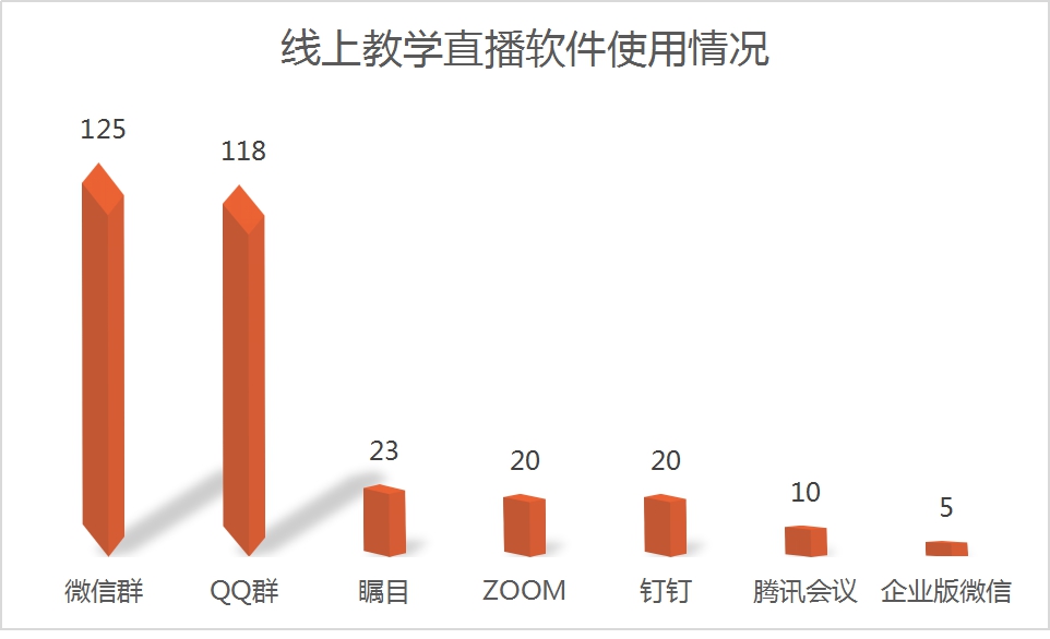 我院老师线上教学平台软件多样,搭配也丰富多彩,多达44种不同的混合方式。