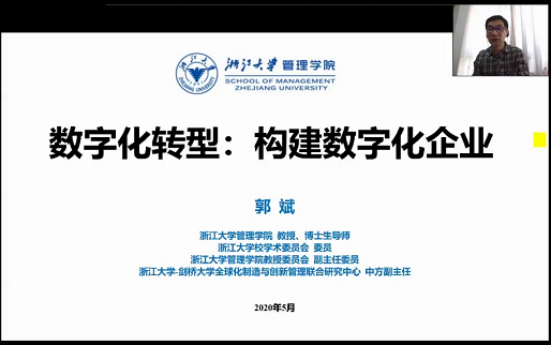 MBA教育中心主办 “宁波大学名人、名嘴、名企”暨第三十四期MBA论坛成功举行。本次论坛很荣幸地邀请到了浙江大学管理学院郭斌教授作为主讲嘉宾,分享主题是《数字化转型:构建数字化企业》。由于疫情原因,本次论坛采有钉钉群直播方式,2019级MBA学员、历届MBA校友及部分师生共150余人参与此次论坛。