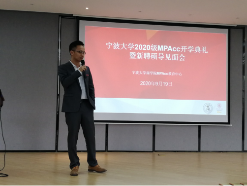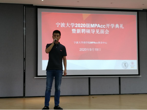 接下来,邱妘教授对三位兼职硕导的出席表示感谢,同时也对新生的到来表示欢迎。在简要回顾了宁波大学会计专业自上世纪90年代以来建设发展的情况后,重点介绍了宁波大学会计专硕(MPAcc)的培养目标和办学特色,旨在培养具有国际视野、战略眼光、具备领导能力、沟通能力的人才。目前MPAcc项目包含四个研究方向:跨国经营与国际并购、价值创造与管理会计、内部控制与风险管理、财务优化与公司治理,建议同学们结合自身兴趣爱好和能力特点,在对个人职业生涯的主客观条件进行分析、总结的基础上,根据自身实际情况选择适合的研究方向。也对新生的分享了三个关键词,如何做人,如何做事,如何做学问。希望同学们可以在未来的学习生活中学会与人沟通,做事真诚踏实,认真做好研究与实践,能做一个拥有正能量、努力发光发热的新青年。