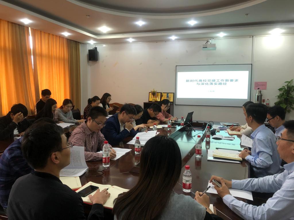 党委于10月14日下午召开全体党支部书记会议。会议包括党务干部培训、传达上级文件精神、通报下半年党建工作重点和教工党支部书记汇报支部建设情况等内容。学院党委书记史宏协主持会议,全体教工和学生支部书记参加会议。