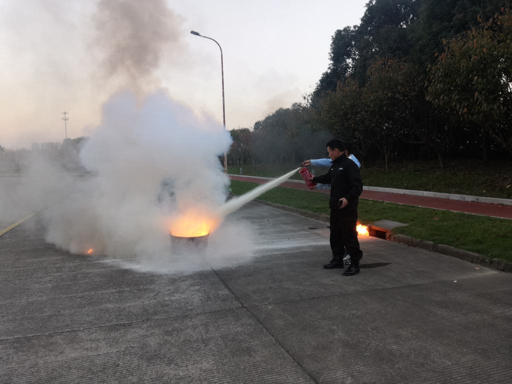 活动伊始,徐作义为在场同学科普了消防安全知识,传授了防火救火技能。其中,他重点讲解了灭火器的构造、使用方法、操作步骤等内容。随后,进入消防演习模拟环节,演习安排在11号楼楼下空旷场地,现场准备了柴油桶、柴油等道具,学生亲身体验了灭火器的使用。
