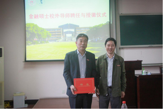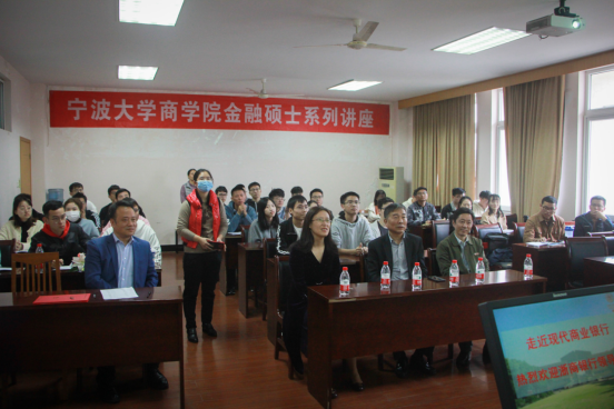 11月13日下午,我院在418会议室举行了金融硕士校外导师聘任授徽仪式暨“走近现代商业银行”金融硕士系列讲座。校外导师浙商银行宁波分行党委副书记蒋荣及行长助理李毓慧应邀到场并作演讲。我院史宏协书记、陈涛副院长、金融系教师及金融专硕全体学生40余人参加。学位点负责人张琴教授主持。