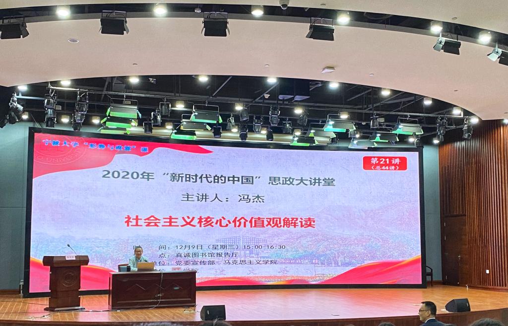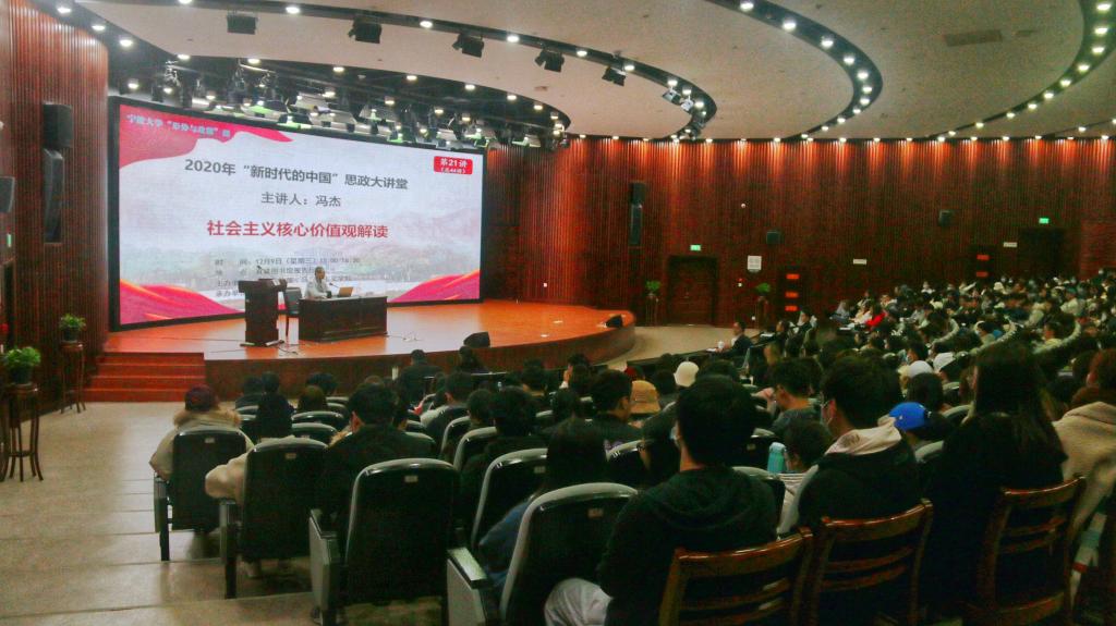 12月9日下午,我院团委组织近500位同学于真诚图书馆报告厅开展由校党委副书记冯杰主讲的“社会主义核心价值观解读”形势与政策课。本次课程由学院副院长盛沛锋主持。