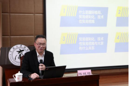 活动第二阶段是企业(高管)进校园活动,由国贸系主任杨丹萍老师主持,宁波跨境贸易便利化协会会长陈健骅应邀作了题为“新国际格局下贸易便利化、技术性贸易措施的作用与演变”的学术报告。陈会长紧紧围绕“国际新格局”、 “贸易便利化”以及“技术性贸易措施”这三大主题展开。首先在国际格局上,陈会长认为当今世界百年未有的大变局既是挑战,也是逐鹿世界的大好机会,未来中国要继续坚定地推进全球化,打造内外双循环的新格局;在贸易便利化和技术性贸易措施方面,陈会长认为技术性贸易措施工作有系统性、专业性、穿透性三大特点,而贸易便利化的工作则是将技术性贸易措施不断简化、透明化与标准化。同时预测新国际格局下,贸易便利化、技术性贸易措施作用和影响将会越来越大。最后,陈会长结合实际,就与体育博彩