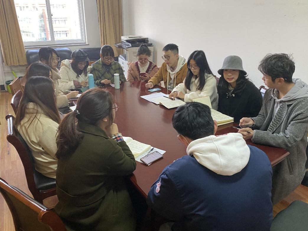 3月2日,我院研究生会在11号楼408室举办新学期第一次干部会议,研究生会秘书长朱文洁、主席团及部门主要负责人参加本次会议。