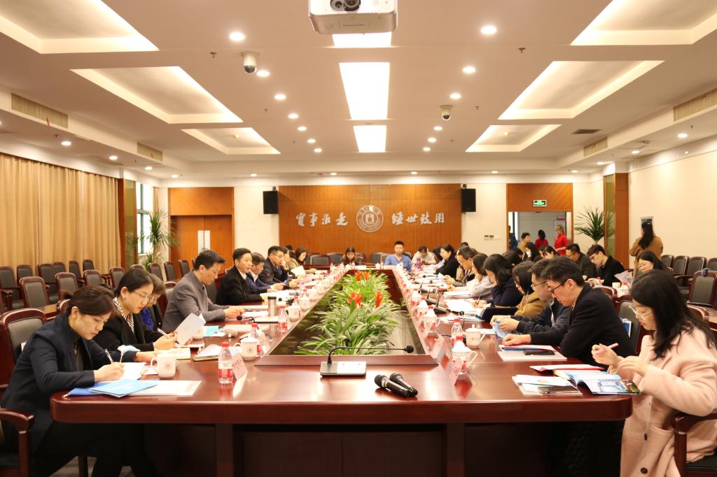 院长金祥荣、党委书记史宏协、副院长盛沛锋、副院长陈涛、协理副院长朱一鸿、国贸系主任杨丹萍,金融系教学系主任贺翔,学工办相关辅导员参与座谈。座谈会由学院党委副书记韩雯琛主持。
