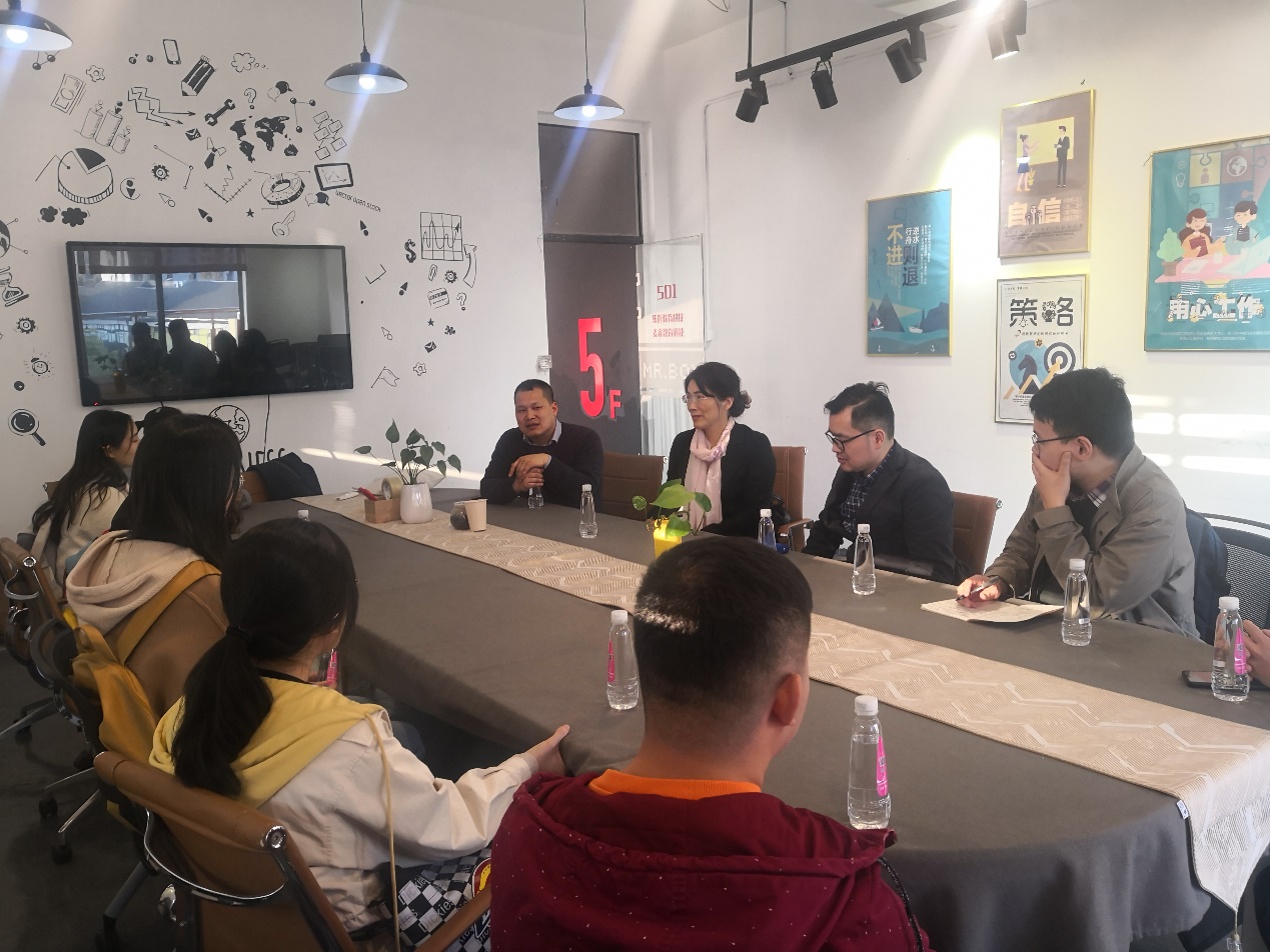 在鄞州集盒文创产业园,产业所团队受到黄玺总经理的热情接待。黄总经理带领大家参观了产业园区和部分入驻企业,详细介绍了产业园的发展历程、规划布局、特色优势和经营理念等。通过参观交流,大家对文创产业园的发展模式有了更详细的了解。在后续的交流中,双方就共同组织学生实习、实践教学、职业规划与竞赛调研等事宜进行了深入沟通。
