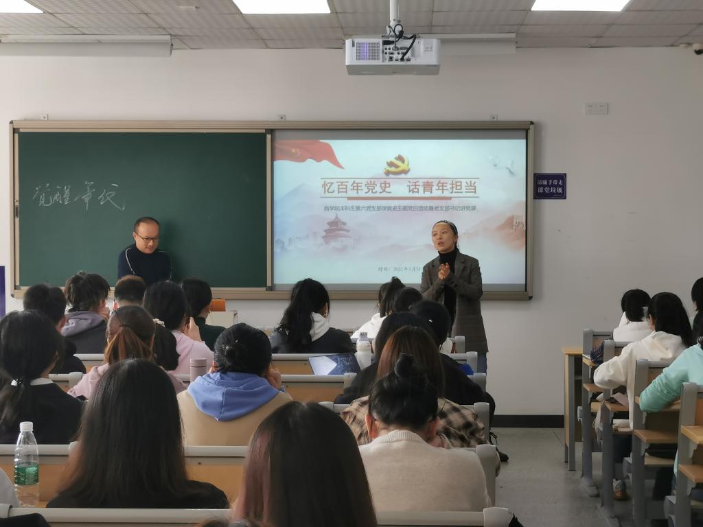 3月31日下午,我院本科生第六党支部联合会计专业教工党支部在包玉书科学楼8#204举行学党史主题党日活动。本次活动邀请会计系教师党员于瑾滔老师主讲,我院本科生第六党支部75名党员、预备党员和积极分子参与了此次活动。