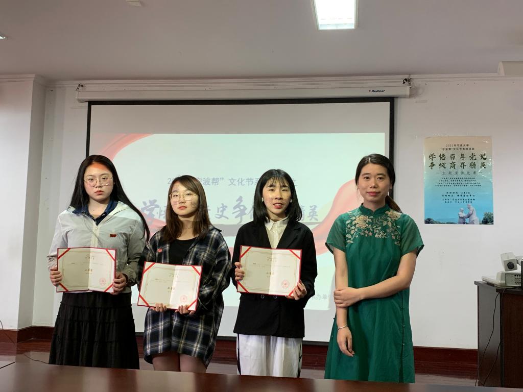 6月5日,由宁波大学党委宣传部主办我院承办的2021年“宁波帮”文化节系列活动之“学悟百年党史 争做商界精英”主题演讲比赛决赛在11号教学楼217教室拉开帷幕。本次比赛邀请了阳明学院学工办主任夏晓晨、机械学院团委书记褚慧丽、我院团委副书记章舒怡、以及我院团委副书记陶含怡担任比赛评委。本次比赛预赛约有30名同学报名参加,经过初赛审核,共有分别来自阳明学院、体育博彩