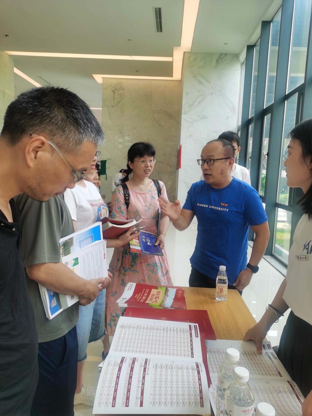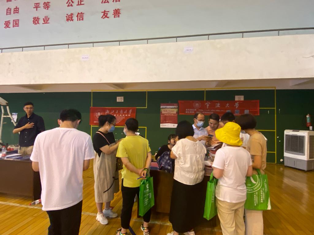 6月下旬,学院全力做好现场招生咨询会工作。组织由各系、各办公室教师及我院优秀学生干部组成的7支招生宣传队伍累计35人赴金华片区参加高校招生现场咨询会以及目标中学咨询会。临行前,学院认真组织相关培训,让每支招生宣传队伍掌握相关招生政策,熟悉招生业务及宣传技巧。6月26日-6月28日,7支队伍不顾长途跋涉、不畏高温、克服种种困难深入到金华市、武义、永康、兰溪等地区目标中学参加咨询会,现场向考生及家长介绍我校的相关情况。我院师生细致耐心地回复考生、家长提问,并根据考生实际情况予以分类指导,得到了他们充分肯定。此外,6月26日-6月30日,学院选派了2名教师和3名优秀研究生担任学校热线电话接线员,负责接听并解答学校招生热线电话的相关问题。各系选派了6名专业咨询联络员、12名片区QQ咨询员,负责解答专业问题。