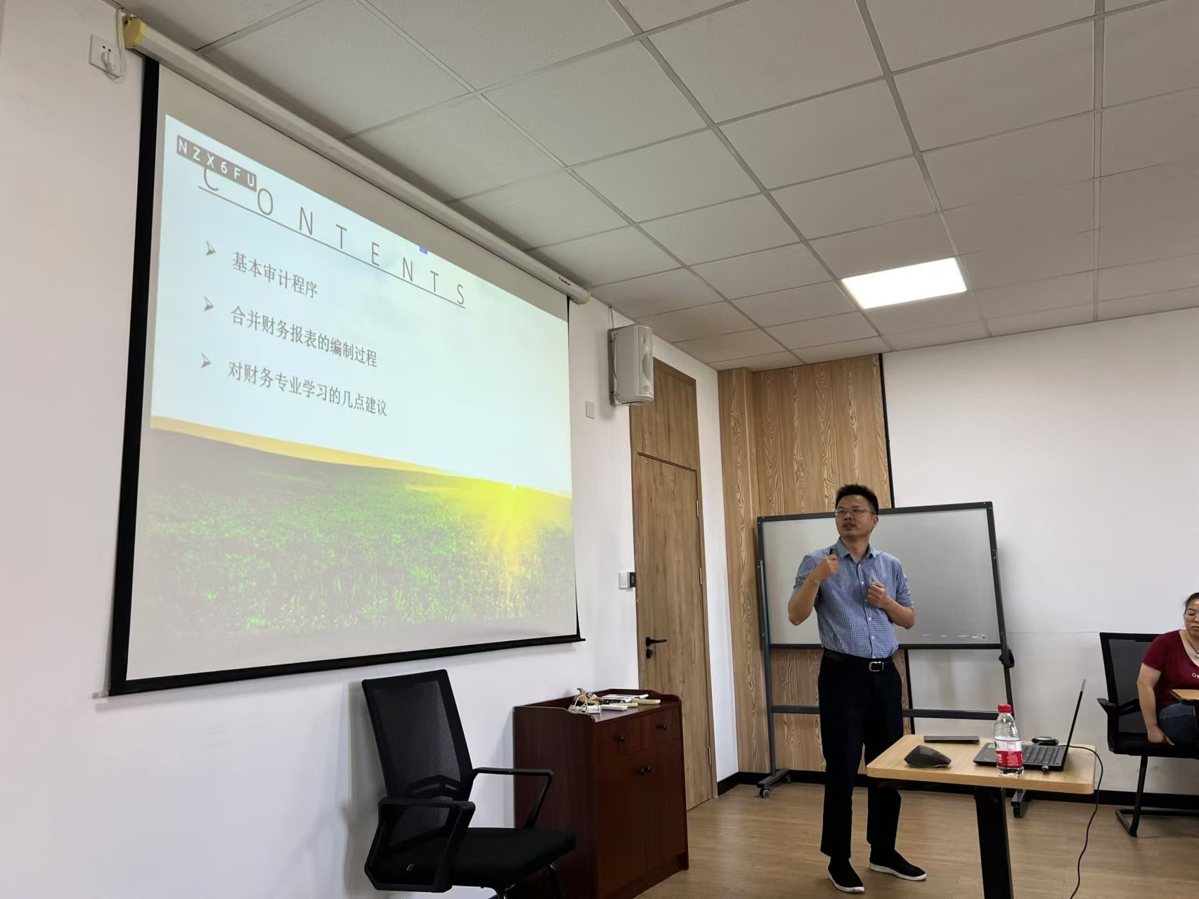 316教室举行《基本审计程序与合并财务报表讲解》主题讲座。本次讲座邀请立信会计师事务所(特殊普通合伙)宁波分所陈炎所长主讲,立信会计师事务所(特殊普通合伙)宁波分所人力资源部经理邬嘉辉、我院会计系教师以及学生20余人参加了此次讲座。