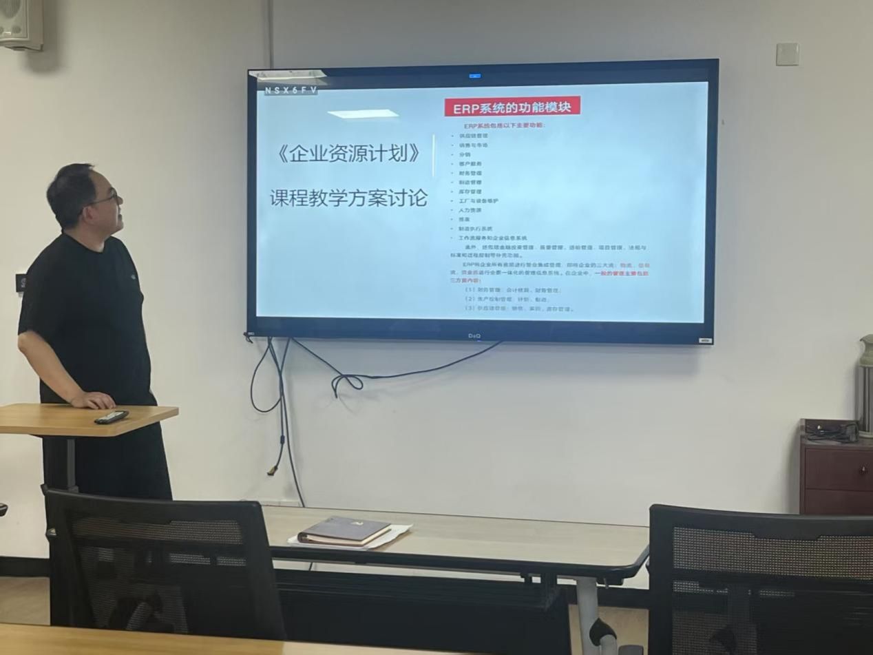 会议的第三个议题是党建与业务双融双促工作研讨。本次主要围绕《企业资源计划》、《信息资源管理》、《管理信息系统》以及《人工智能基础与应用B》等系列核心课程,由各课程(群)主要负责人进行汇报。通过对课程体系、教学方案以及思政融入等内容的设计介绍,与会教师们就课程内容衔接、教学资源共享,以及思政元素与专业课程的有机融合等展开讨论,提出优化建议,为提升教学质量、培养高素质人才打下扎实基础。