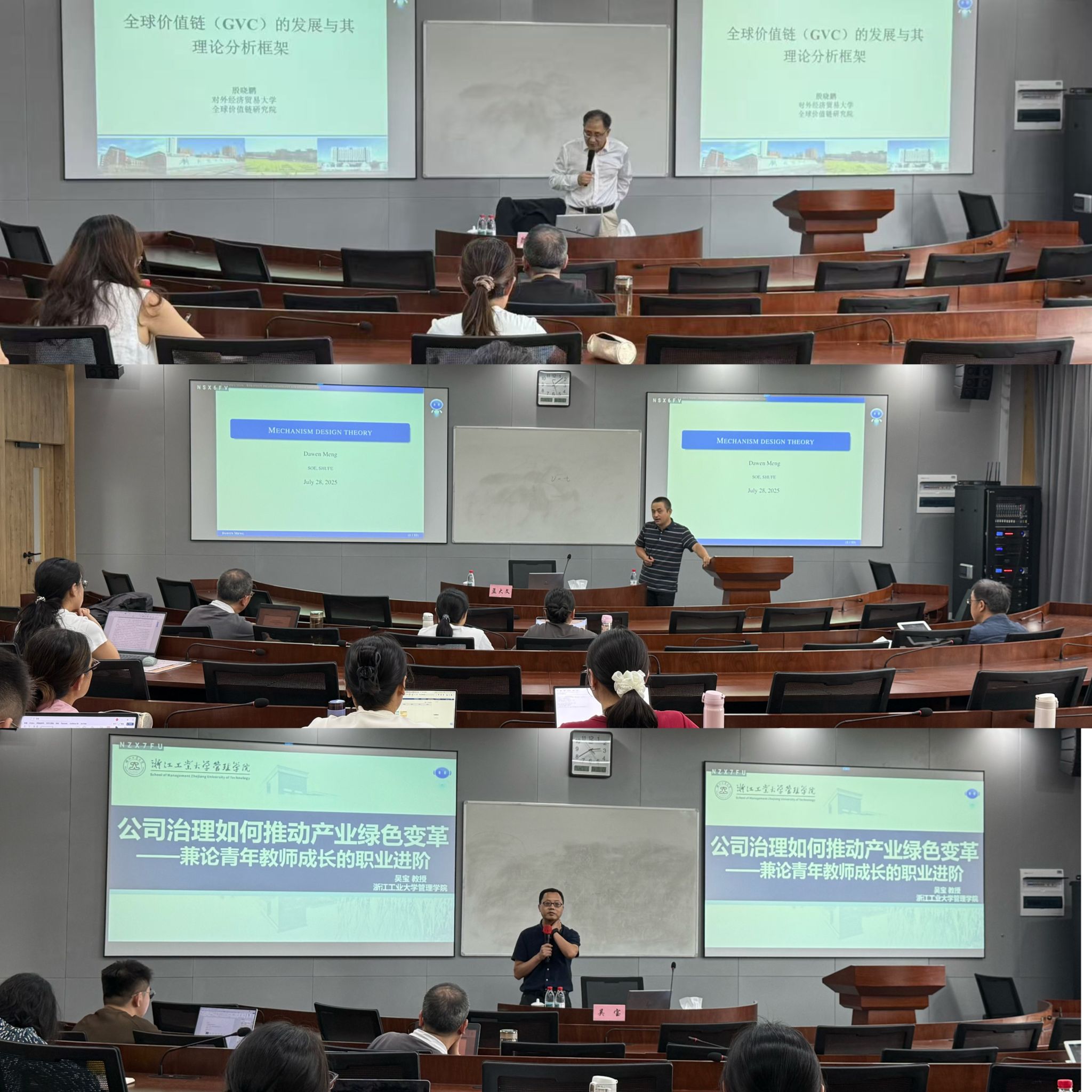 为进一步提升我院教师科研水平和学术研究能力,体育博彩 于7月28日和29日举办了2025年第九届暑期高级研修班。此次研修班共三场高质量科研专题讲座,讲座围绕全球价值链、机制设计理论和公司治理与绿色创新等前沿主题展开,受到学院师生的广泛欢迎与一致好评。