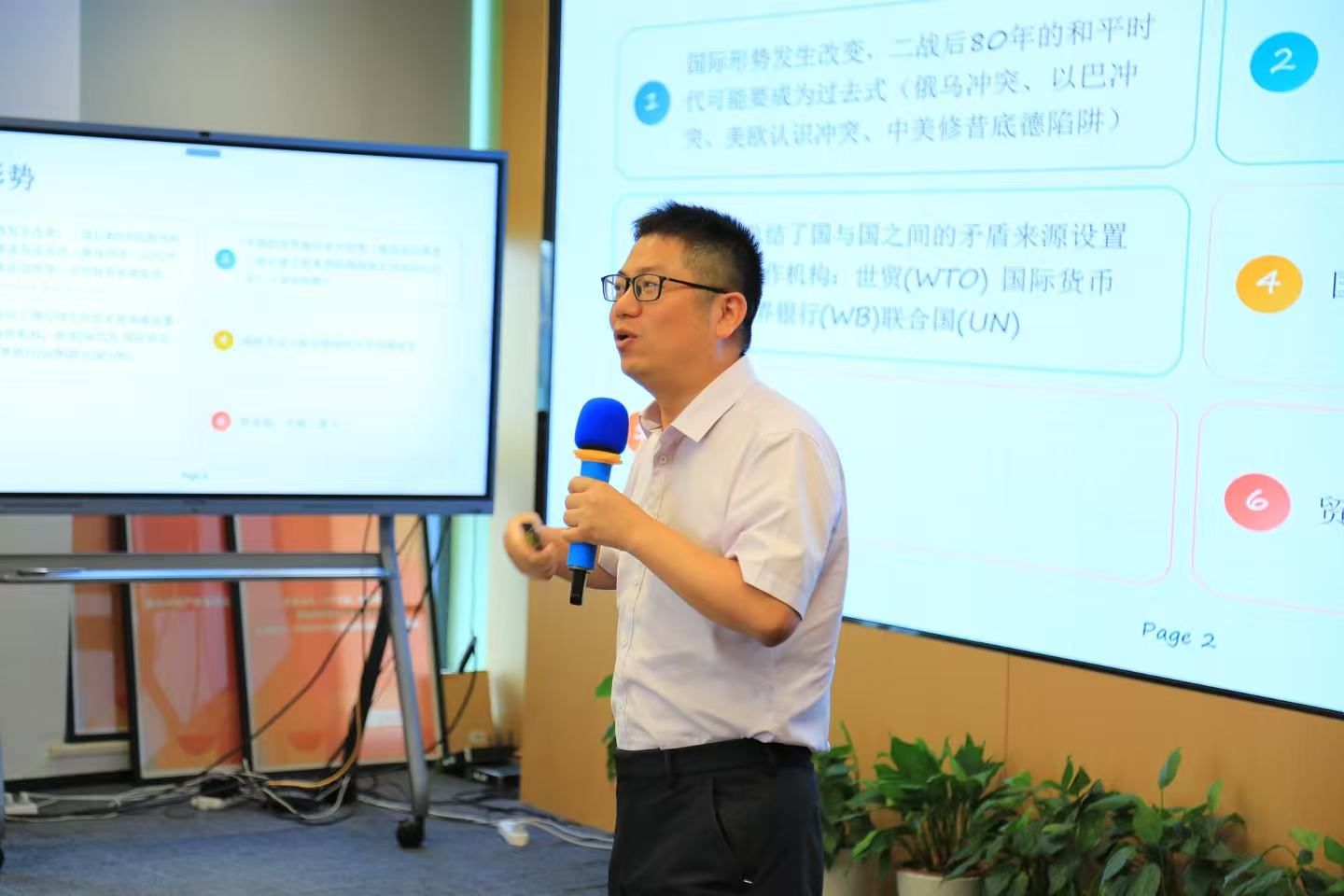 随后,体育博彩 徐挺博士以《当前国际形势下中国外贸企业面临的压力与应对方式》为题开讲,提出三条路径:一是“传统+跨境+内循环”三轨并行,分散风险;二是从国际贸易转向国际投资,通过海外建厂、技术合作锁定资源;三是加快全球布局,在供应链、人才、产能上同步优化配置。