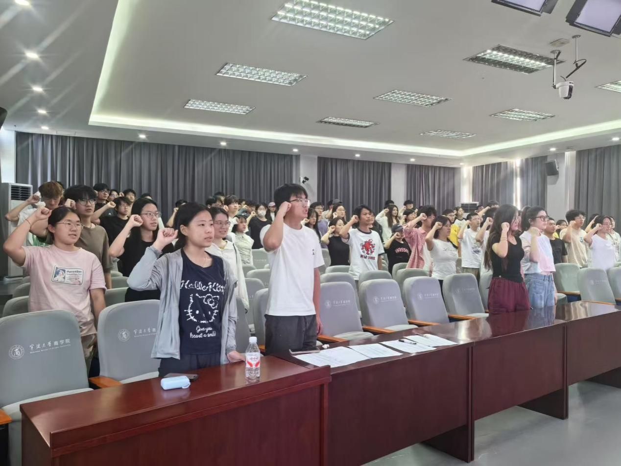最后,全体人员进行宣誓,仪式在洪亮的宣誓声中结束。自学院分团委发布通知以来,各专业、硕士点积极报名,超730余名师生将从学院出发,奔赴全国各地,围绕乡村振兴、关心下一代、红色印迹等专题活动,在社会课堂中“受教育、长才干、做贡献”!此次活动为同学们的暑期社会实践筑牢了安全和思想基础,激励着同学们以饱满的热情投身实践,在社会课堂中锻炼自我,用实际行动书写青春答卷。