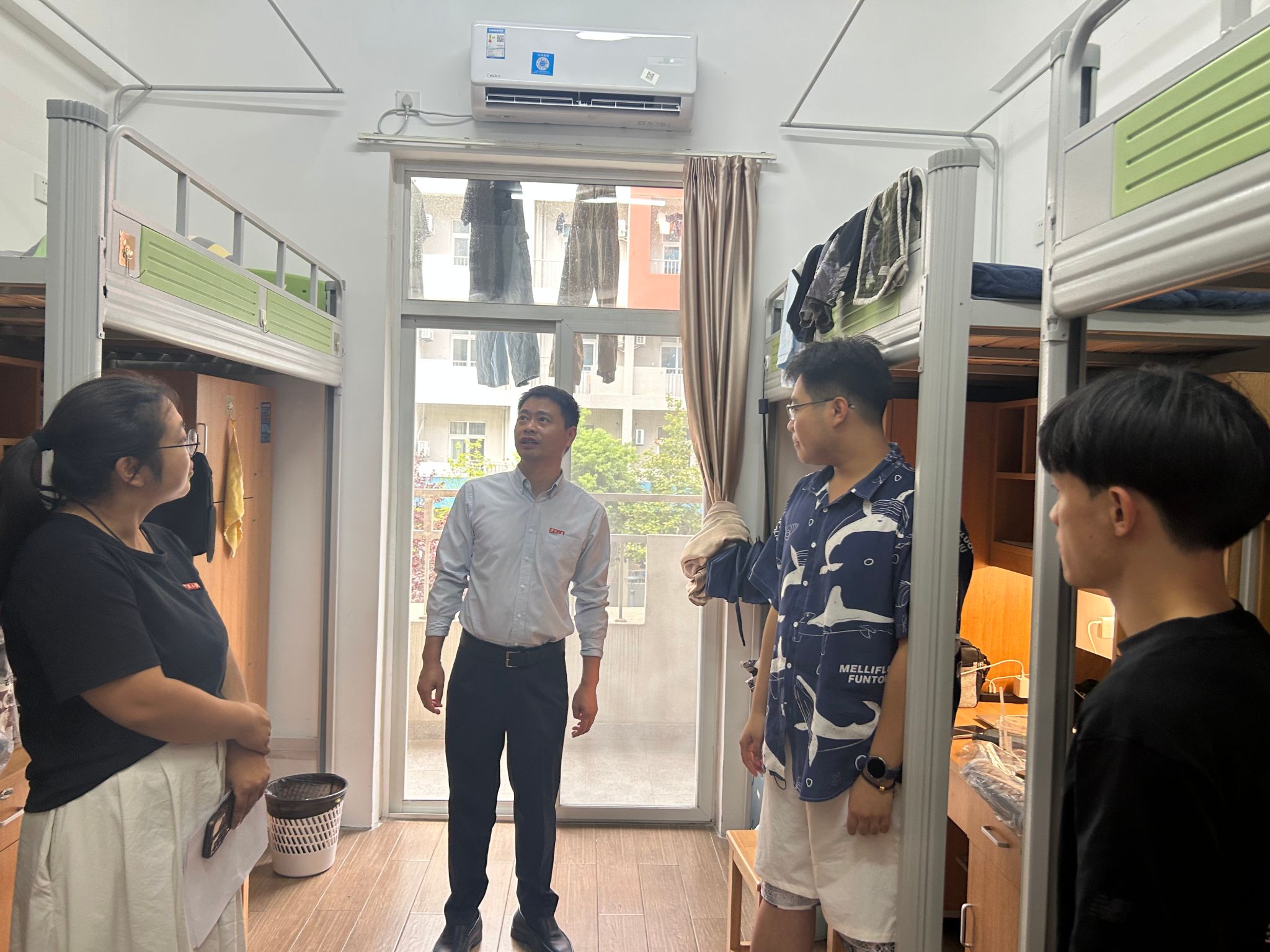 为全面了解研究生新生报到情况及入学适应状态,帮助新生们更快融入新集体与新环境,9月10日下午,体育博彩 党委副书记吴敏、带班辅导员朱文洁、宋辉等一行走进新生宿舍,开展走访慰问活动。